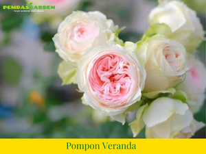 "Pompon Veranda rose, Origin: Bred by W. Kordes & Son, Germany in 1999, Characteristics: Bushy habit, matures to a height...