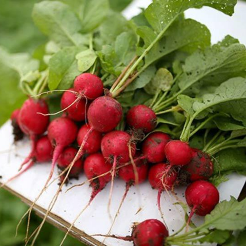 Crimson Giant Radish is a classic heirloom variety that grows much larger than common radishes while staying crisp, juicy, and mildly flavored. Its bright red roots can reach up to 2 inches across without turning woody, making it perfect for those who enjoy a longer harvest window and bigger, more versatile radishes. A reliable producer for both spring and fall gardens, it is an excellent choice for fresh eating, slicing into salads, or pickling. Seeds are Non-GMO and open-pollinated, ideal for any home garden.