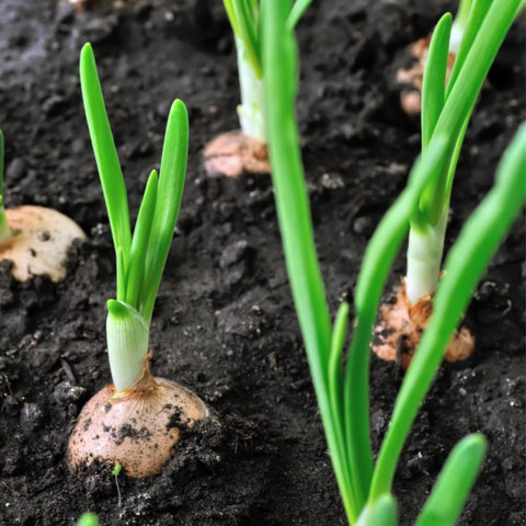 Harvest: Pull when tops fall over and dry. Cure in a warm, airy place for 2–3 weeks before storage.