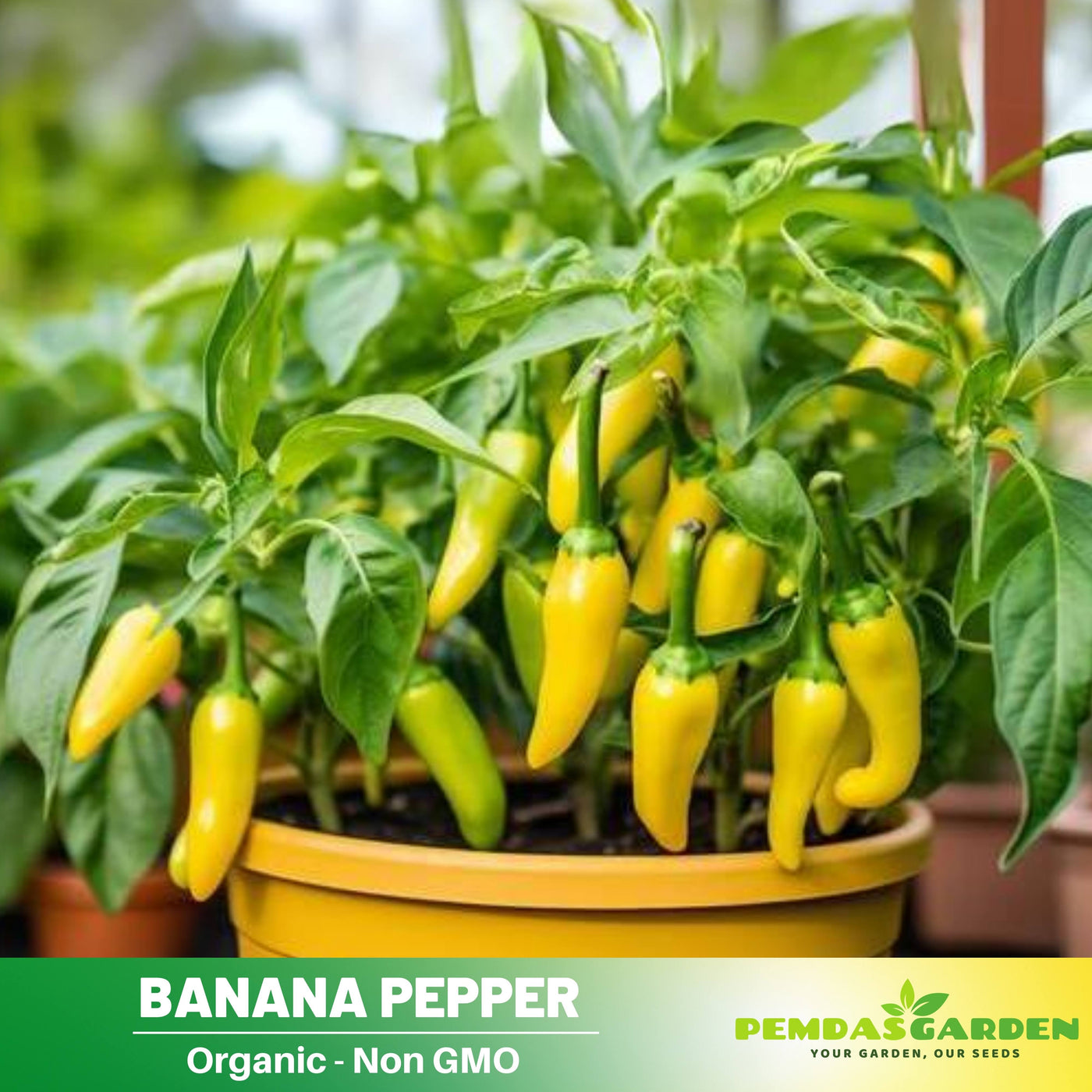 30 Seeds| Banana Pepper Seeds -Heirloom – Non-GMO – Sweet & Mild – High Yield – Easy to Grow – Fresh Eating – Pickling – Grilling – Container Friendly – Garden to Table#7027