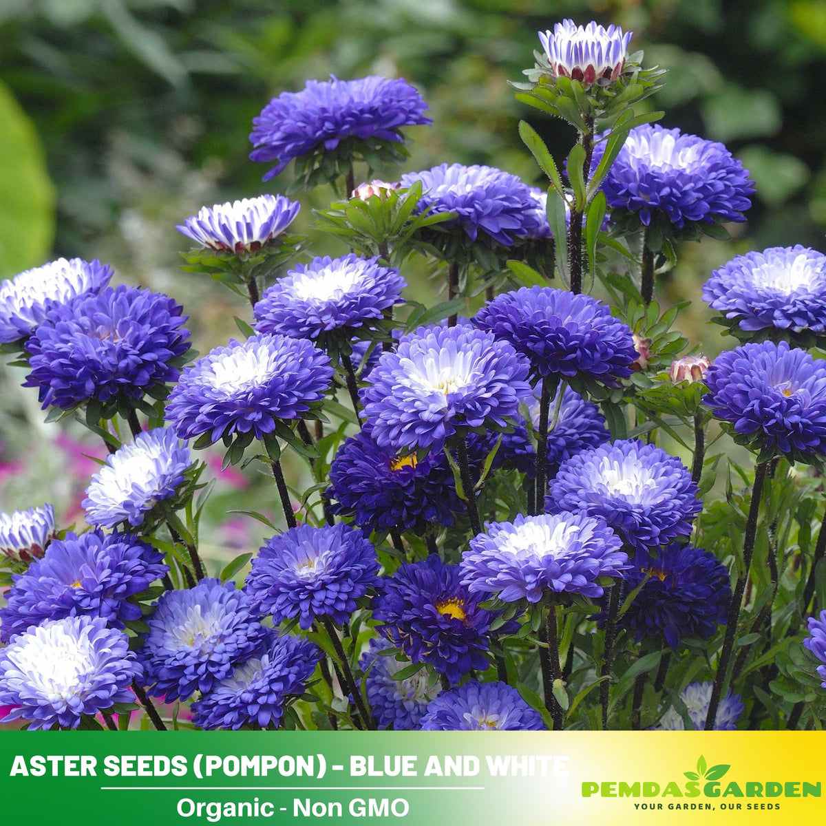 20s | Blue and White Aster Seeds (Pompon) - China Aster - Authentic - Open-Pollinated - Organic - Heirloom - Mix Seeds to Plant - #8039