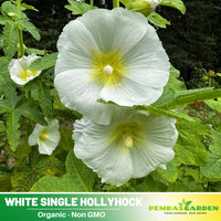 20 White Single Hollyhock - Alcea rosea Seeds – Heirloom, Non-GMO, Tall Perennial Flower, Vibrant Blooms, Easy to Grow for Borders, Cottage Gardens, Cut Flowers, and Pollinator Gardens#8094